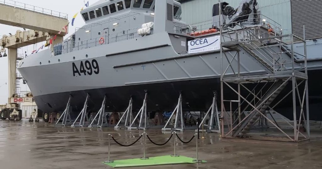 History was made on Thursday in Les Sables d’Olonne France with the launching of the first ever purpose built hydrographic survey vessel by the Nigerian Navy. Speaking at the ceremony at the OCEA shipyard, the Chief of the Naval Staff, Vice Admiral Ibok-Ete Ibas, represented by Rear Admiral Abraham Adaji informed that the new vessel was conceived as a replacement for the Nigerian Navy survey vessel, NNS LANA which was decommissioned about 10 years ago.