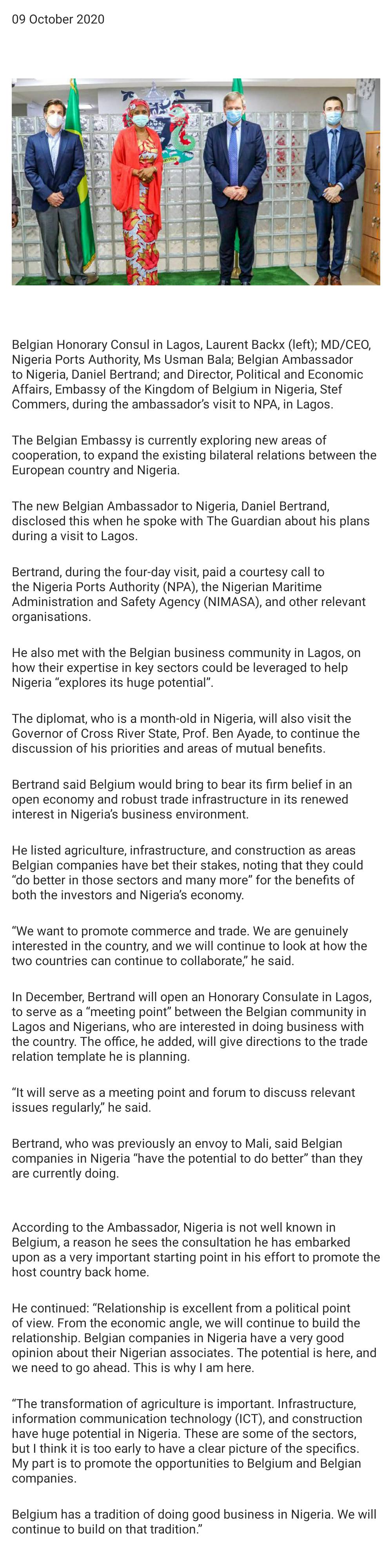 Belgium explores areas of economic cooperation with Nigeria