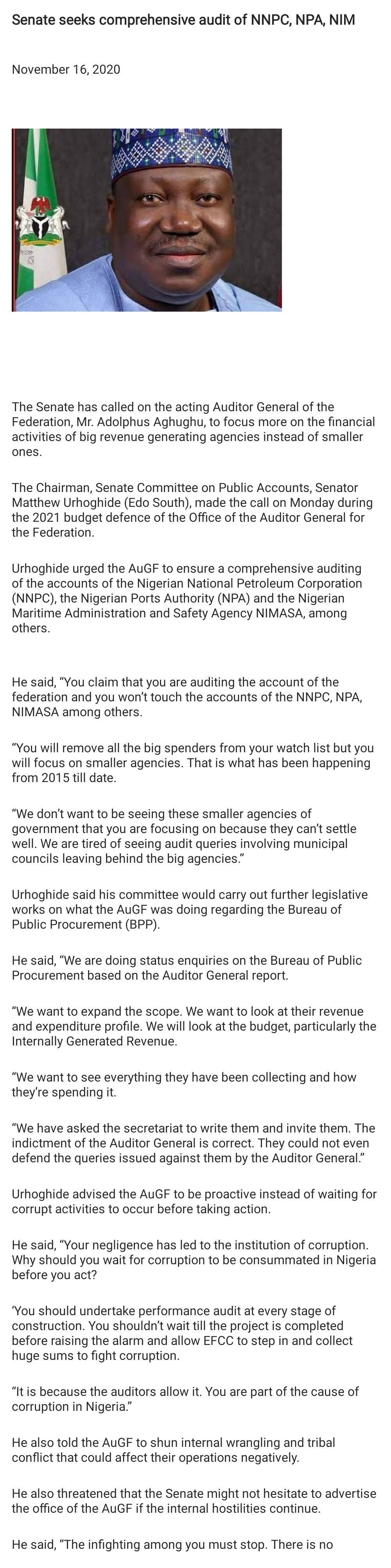 Senate seeks comprehensive audit of NNPC, NPA, NIMASA