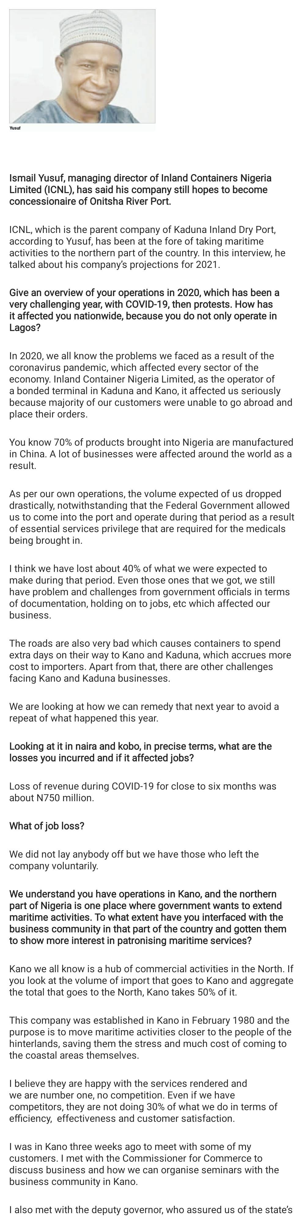 How we spread maritime services across Nigeria –Yusuf, MD, ICNL